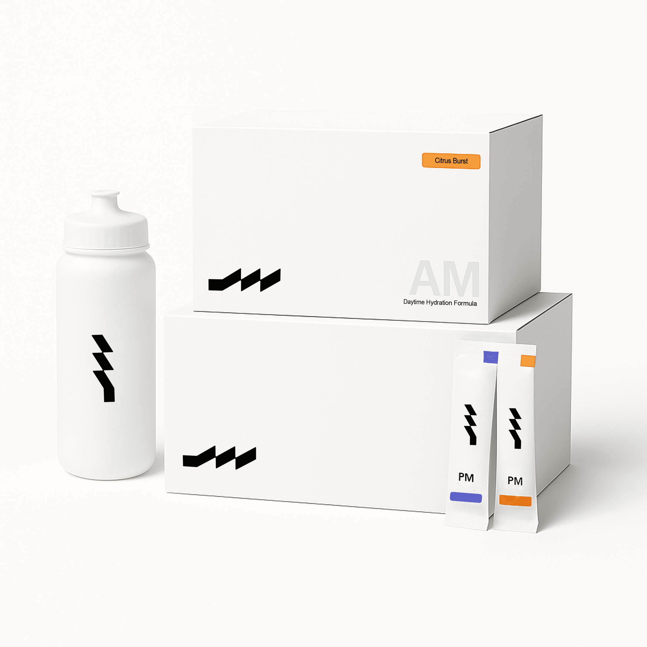Our AM Daytime Formula powers you through work, training, or whatever the day throws at you — with nootropics, adaptogens, and balanced hydration for ultimate performance.